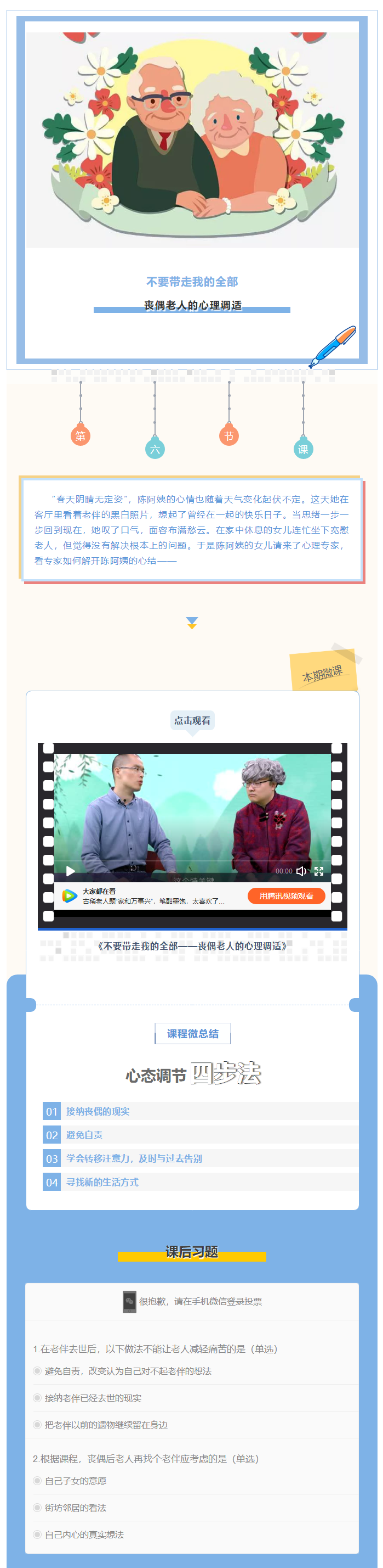 浦东新区社区心理健康教育系列微课第六节――“不要带走我的全部”:丧偶老人的心理调适