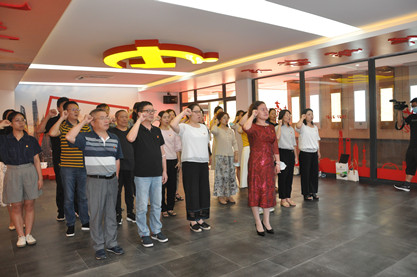 “主题党课馆”内则设有红色精神板块点亮装置,党员们走过展牌,亲身体验红色精神被点亮的喜悦。 “先锋展馆”展出的则是浦东新区教育系统教师模范先锋们的先进事迹。仔细浏览一则则事迹,虽寥寥数笔,却无不透露着教师们为党育人、为国育人的担当。 活动最后,大家齐聚“信仰大厅”。全体党员面对党旗,倪美华书记领誓,举起右手握拳,庄严宣誓,重温入党初心。铿锵有力的宣誓声久久回荡在大厅中央,彰显党员们接续奋斗、投身发展浦东教育事业的信心与决心。