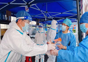 在封控小区内,社区学校的志愿者们变身大白。他们来回地奔波于快递站和居民家中运送快递;帮助年迈的老人在健康云登记检测二维码;维持核酸检测现场秩序;带领居民进行楼组消杀;上门关心关照独居老人;在重点封控楼道下值守......