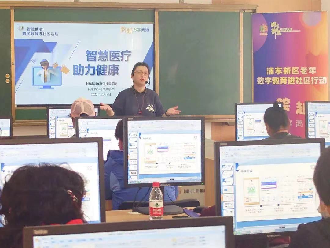 老人出行不会打车,看病忘带医保卡? 为进一步推动解决老年人在运用智能技术方面遇到的困难,使老年人更加便捷地接受数字教育,浦东新区开展了老年数字教育进社区行动,陆家嘴街道社区(老年)学校积极响应,在社区学院指导下,更好地助力老年人跨越“数字鸿沟”。