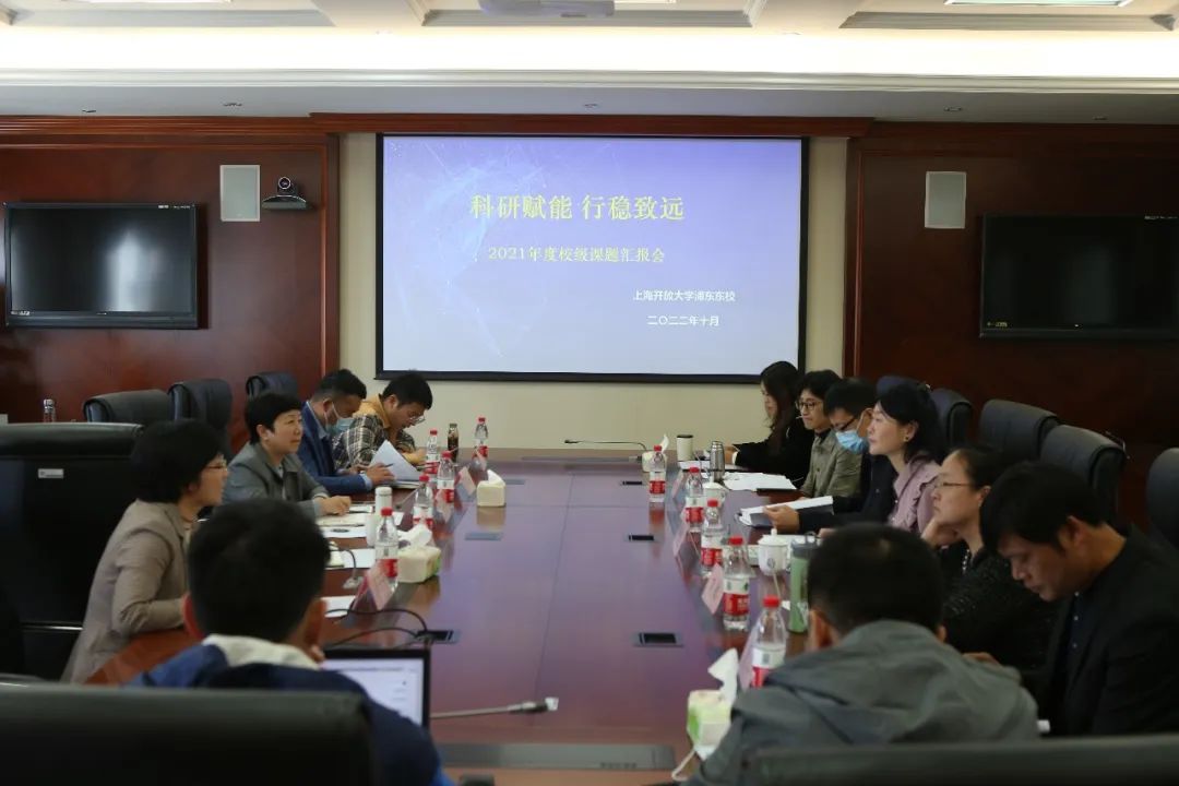 日前,上海开放大学浦东东校举办了以“科研赋能 行稳致远”为主题的2021年度校级课题结题汇报会。会议邀请上海开放大学理工学院副院长李杰、公共管理学院教授王晓楠莅临指导。上海开放大学浦东东校吴燕校长、吴松副校长、科研组老师、课题组成员及四十周岁以下青年教师参加会议,本次活动由上海开放大学浦东东校教师发展部李云芳主任主持。