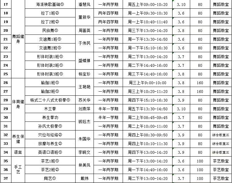 重要通知 各位老师、学员: 陆家嘴街道社区学校2023年春季班3月6日起开学,本学期开设课程具体安排如下: 课程说明