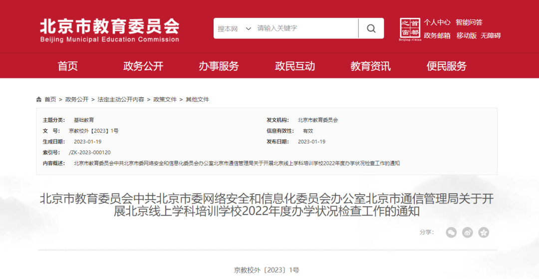 近日,北京市教育委员会、中共北京市委网络安全和信息化委员会办公室、北京市通信管理局联合发布《关于开展北京线上学科培训学校2022年度办学状况检查工作的通知》。 据了解,这是自2021年12月31日北京市教委向通过“备改审”的10家线上学科类培训机构发放办学许可证以来,首次发布专门针对线上学科培训机构出台的年检政策文件。 《通知》包括正文和附件,其中附件为《北京线上学科培训学校年度检查指标(试行)》.doc,主要内容包括6个一级指标、29个二级指标和93个三级指标观测点。 年检设置了一、二级指标,一级指标包括党的建设、培训条件、内部管理、培训行为、财务监管和质量效果。每一项都细分了二级指标,其中,按时、足额发放从业人员工资,诚信招生,宣传费用合理等都细化在二级指标中。