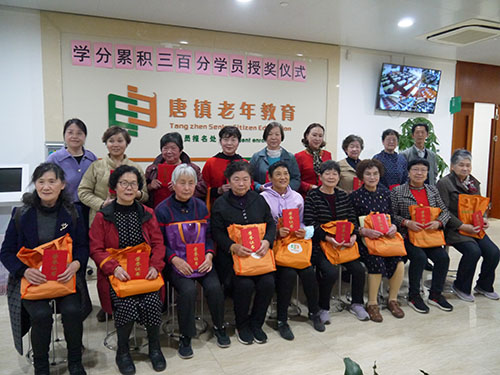 4月10日,唐镇社区(老年)学校举行颁奖仪式,向第四、第五批参加文化休闲类课程培训学分累积达300分的黄秋英、龚金耀、丁德龙等56位学员颁发荣誉证,并赠送书包作为纪念品。 自2011年开始,唐镇老年学校开设文化休闲类课程培训。为鼓励老年学员持续学习,培养终身学习理念,特在《唐镇老年学校教务管理制度》中设百分奖励制,其中规定:学员到校上课或参加活动一次记1个学分,学期全勤学业评定为优秀者,奖励2学分;学员学分累积满300分后张榜公布,授证发奖。 上述56位学员在唐镇老年学校的学龄大多在4-7年。他们老有所学,坚持不懈,克服了繁忙的家务、身体状况逐年欠佳、智力衰退等困难,追随时代发展,学而不辍,学有所成,且多位在市、区的相关场合展示了才艺。有的学员还组建了学习团队,在校外开辟第二课堂,带动老年朋友参与学习。在过去的三年中,他们积极参加直播课堂学习,参加网上读书活动,其中朱爱琴等3位学员被评为上海市网上读书“百名先进个人”,冯惠娟等4位被评为上海市网上读书“长者学习之星”,张腊梅等3位被评为上海市数字阅读活动“阅读达人”。 (唐镇社区学校 供稿 / 简妮 选编)