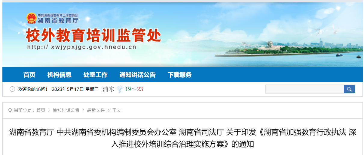 湖南省加强教育行政执法 深入推进校外培训综合治理实施方案