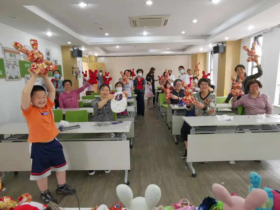 精美的围兜、可爱的兔子玩偶慢慢制作成型,活动现场笑声连连,温馨有趣,大家纷纷表示体验到了布艺的乐趣,为自己小成就感到喜悦。