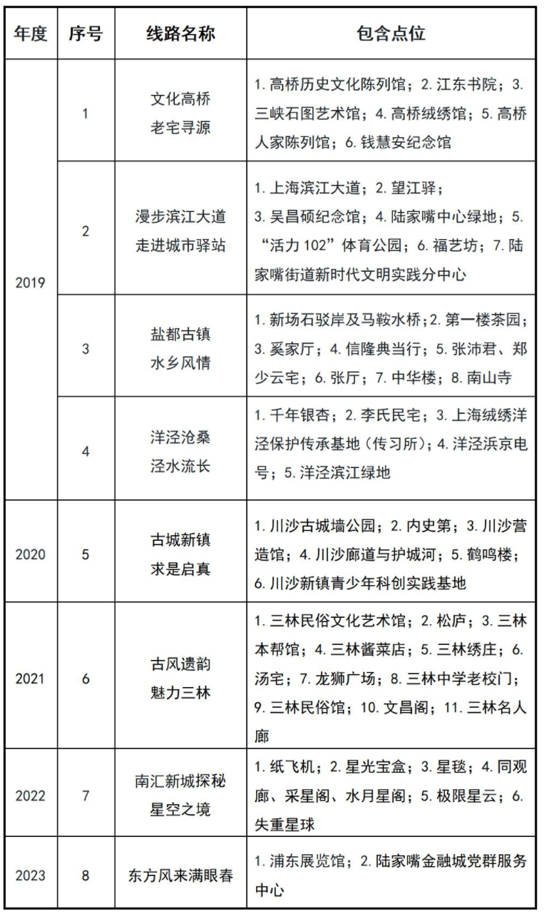 浦东新区市民终身学习人文行走主题学习路线一览表