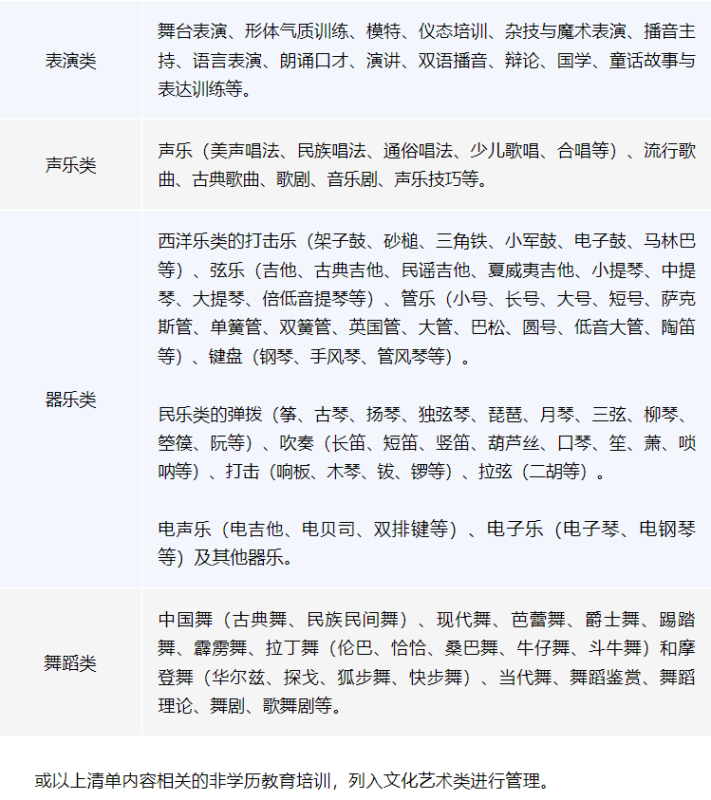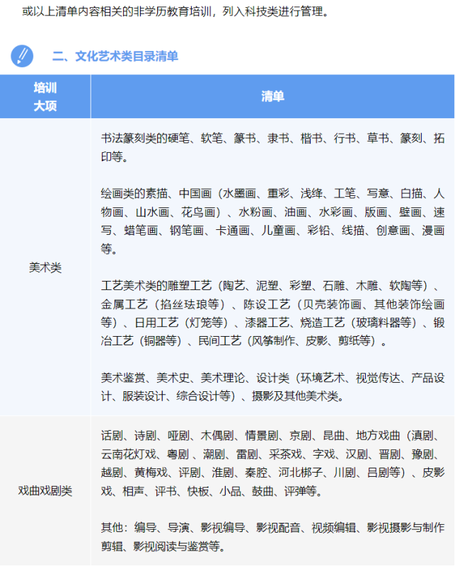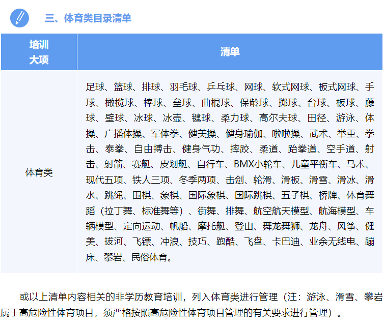 说明:本目录清单在云南省全省范围内适用(含线上、线下非学科类培训),各州(市)、县(市、区)可直接适用省级目录清单,也可根据本地实际情况自行制定目录清单。