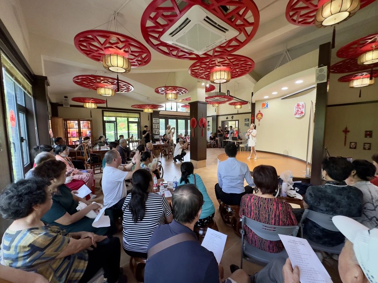 8月25日下午,阵阵悠扬的黄梅雅音在位于浦东金桥公园的浦兴雅韵楼内回响,由浦兴戏曲文化园主办,浦兴路街道新时代文明实践分中心、浦兴路街道图书馆、浦兴社区学校、浦东金桥公园协办的“雅韵清风”黄梅戏演唱会在这里举行,四十多名戏曲爱好者、社区居民、公园游客观看了演出。
