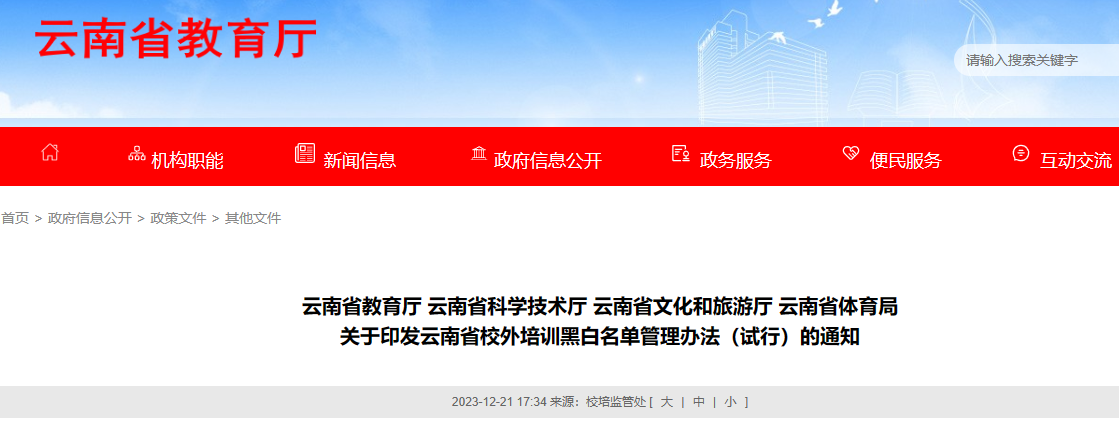 为进一步规范校外培训行为,深化校外培训治理,切实维护广大中小学生和学生家长权益,现将《云南省校外培训黑白名单管理办法(试行)》印发给你们,并提出如下工作要求,请一并贯彻落实。