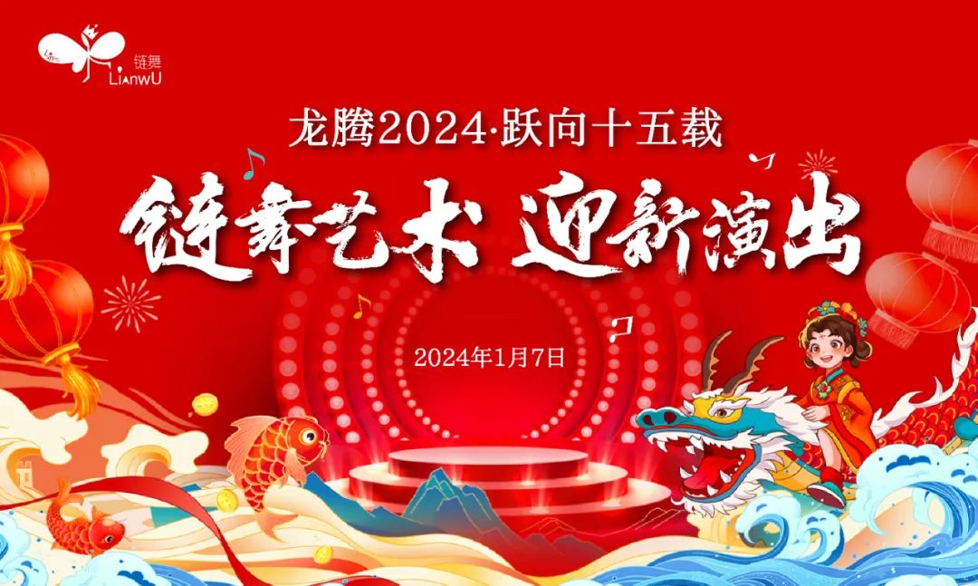 感谢孩子和家长们一路携手同行,“龙腾2024 跃向十五载”链舞艺术迎新演出圆满结束。十五年春华秋实,链舞艺术砥砺前行。美育圆梦,链接未来,孩子们在舞台上绽放精彩。我们再次祝愿大家新年快乐,也让我们一起祝福链舞艺术十五周年,让我们一起祝愿链舞艺术明天会更好。