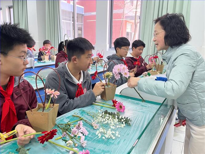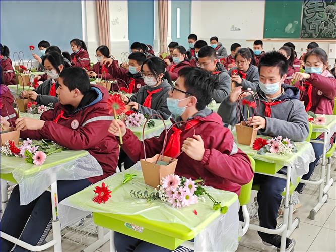 进才北校初一、初二的同学们参加了插花艺术体验活动。在主讲老师的指导下,同学们纷纷开启了创作之旅。他们专注地修剪枝叶,巧妙地搭配色彩。每一束花经过精心设计,高低错落、相映成趣。同学们在体验中感受到了花艺的魅力,更在创作中领略了美的绽放。