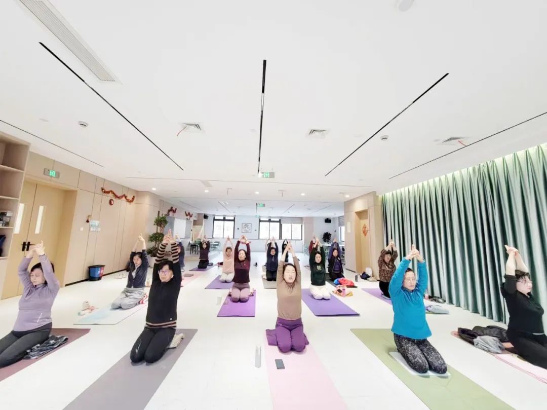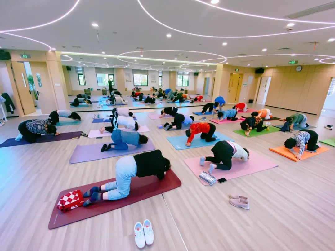 伴随着舒缓的音乐,在老师的带领下,仰卧式、半月式、莲花盘坐....