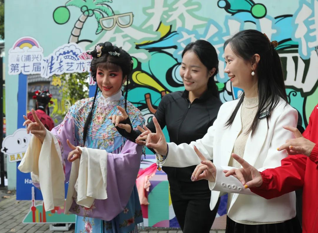 正值第七届上海(浦兴)淮音艺术节举办之际,浦兴路街道的长岛路街区也热闹非凡。结合党建引领街区治理工作,艺术节特设“流动的秀场”“国潮小市集”和“体验式戏剧”环节,让居民在外出就餐、购物或散步时能与艺术不期而遇,近距离感受戏曲文化的魅力。