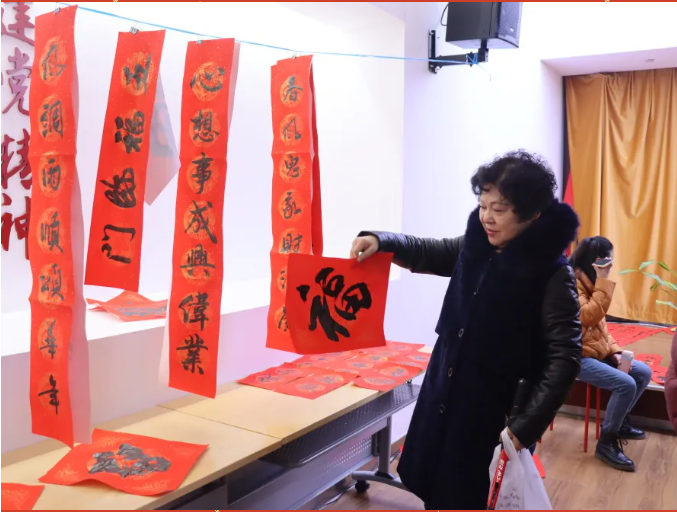 本次活动邀请到八位书法爱好者,现场挥毫泼墨,为大家书写春联和福字。居民朋友们在书法艺术中感受到浓浓的年味儿,挑选了喜欢的作品带回家,还能现场请书法老师们“定制”自己专属的文字哦。“心想事成”“福星高照”“五福临门”“风调雨顺颂华年”……这么多具有美好寓意的春联,都选不过来啦!
