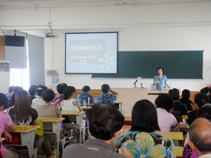 9月14日上午,金桥镇举办了题为“皮肤、健康、美容”的健康知识讲座,由东方医院皮肤科副主任医师黄懿主讲。来自各村(居)委和部分单位的90余名中、青年女性参加讲座,新区卫生局、新区爱卫办等上级主管单位的领导到场进行了观摩。 讲座中,黄医生讲解了不同年龄段的女性在皮肤保养中容易遇到的问题及其原因,并根据不同女性的特点讲授了处理皮肤问题的方法,同时根据自己多年的临床实践经验,向大家传授了皮肤保养的的诸多小窍门。讲解结束后,听众与讲课老师进行了互动,就生活中遇到的皮肤问题进行了现场咨询。讲座持续时间虽然不长,但内容十分丰富,含金量高,现场女性纷纷表示获益匪浅,同时也得到了上级主管部门的肯定。 此次讲座是浦东新区“健康知识进社区”系列活动之一,也是金镇开展市级健康镇试点建设的重要举措,接下来,将陆续开展各项后续活动。 (金桥镇社区(成人)学校供稿 选编:斯原)