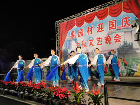 在国庆节到来之际,六灶镇在果园村民委广场举办迎国庆文艺晚会。晚会在舞蹈《祝福祖国》中拉开帷幕,整台文艺晚会节目丰富多彩,有歌舞表演,民乐合奏,沪剧清唱和健身操展示等,不时博得现场观众的阵阵掌声,歌伴舞《好日子》、第三套海派秧歌舞将整个晚上的气氛推向高潮,在优美欢乐的旋律中,演员们用娴熟的舞蹈语言,抒发了村民对美好生活的向往和祝福,晚会在舞蹈《欢聚一堂》中落下帷幕。