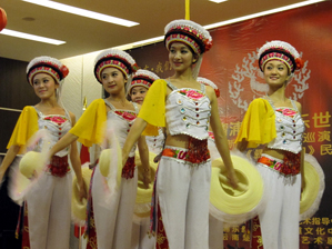 9月27日下午,由浦东新区文化艺术指导中心主办、洋泾街道文化站承办的2010年洋泾社区文艺巡演——《彝山》民族风情专场演出在洋泾社区阳光驿站举行。演出单位云南楚雄州民族艺术剧院民族乐团和歌舞团为洋泾社区广大居民带来了一场精彩纷呈的声乐、舞蹈和器乐展示。乐团和歌舞团由彝、白、傣、汉、苗、回等多民族演员组成,曾多次出访美国、荷兰、德国、日本等地作文化交流演出,并在国家、省、州级专业比赛中屡获殊荣。不论是在祖国的大江南北、还是在国际艺术舞台上,都以其浓郁的民族特色和精湛的技艺,深受海内外观众的欢迎。演出当天,阳光驿站会场座无虚席,独具民族特色的服装和歌舞,引来观众的阵阵掌声,演员们也被居民的热情深深打动,希望今后能有更多机会来到洋泾社区交流演出。