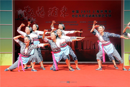 10月22日上午,“中国馆”邻居周家渡社区160名文化志愿者以嘹亮的“红歌”声、优美的“红舞”曲,向八方观博游客展示周家渡社区群众文化,以“精神文化”拥抱世博! 周家渡160名社区文化志愿者在世博园区内社区市民舞台,参加了以浦东新区宣传部、文广局主办,新区文化艺术指导中心承办的“中国2010上海世博会市民活动,浦东新区专场文艺演出”,把周家渡半年多来精心打造的一台社区特色文艺亮相在市民舞台上,精彩、完美的红歌、红舞,为世博会增添上靓丽的色彩,为“成功、难忘、精彩”的世博会奉献上一台“精神文化”大餐,受到广大文明观博游客热烈欢迎。 周家渡合唱团100名队员阵容整齐,穿上从电影建国大业的服装设计师王秋萍设计“十全十美”的演出服装,在阳光照耀下显得格外绚丽壮观,合唱团气势宏伟、像支专业水准的合唱团,一曲优美动听的中国民歌《茉莉花》拉开了演出的序幕。红歌节目有外国民歌集锦《我的太阳》、《小杜鹃》、《乌亚乌拉》、《剪羊毛》、《铃儿响叮当》,这激情昂扬、嘹亮、优美的歌声,久久在世博园区内激荡回响,充分表达了“五洲同歌世博园”。尤其是一首中国民歌《远方的客人请你留下来》,合唱团队员以热情洋溢的歌声、东道主身份邀请八方观博游客留下再来上海作客,这歌声深深地打动了每一位文明观博游客的心。广大游客把手掌都拍红了,“你们的歌声太美了”! 红舞《五彩缤纷白莲泾》有舞蹈《采菱》、《采桔》、《采棉》、《采蜜》、《采茶》组成一套完整、美丽的组舞,犹如一幅江南风景画卷,仿佛把八方观博游客带入52年前周家渡农家田舍;渡口的情景,留下了一个美丽的回忆。如今,百年一遇的世博会使周家渡变成了一个美丽、幸福、和谐的家园,演绎了“城市,让生活更美好”的今天、明天、未来!舞蹈一个接一个演出,使观众看得目不暇接,流连忘返。“这台红舞表演太美了,具有专业的水准,把我们的心深深吸引住了。”3位来自常熟的游客说。还有一群从浙江、江苏来的游客说:上午只顾得参观场馆,未赶上看文艺节目,只看了一半,心里怪痒痒的不过瘾,于是,坐在位子上吃午饭准备观看下午整台演出,过上文化一把瘾! 一台“红歌”、“红舞”一个小时演出,把周家渡红红火火的群众文化活动展示出来,一展周家渡人民拼世博的风采,这嘹亮的歌声,这优美的舞姿向观博游客奉送上一份“文化大餐”,向世博献上一份厚礼。红歌唱出了周家渡“渡口”,“家门口”,“窗口”,“火红”激情,红舞“舞”出了东方神韵,在世博园区内靓起一道服务世博,宣传世博,奉献世博,“精神文化”的风景线!据悉,在世博园区内社区市民舞台浦东新区7场专场文艺演出,周家渡专场从22日、23日连续2天6个场次,是浦东新区文艺演出属首个创举。