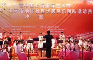 浦兴社区民乐团不负众望,挑大梁当主角,迎难而上,发挥了正常演奏水平,荣获“第三届浦东洋泾杯”长三角地区社区优秀民乐团队邀请赛银奖。 来自长三角地区17支优秀民乐团,一千多名民乐高手欢聚在浦东新区建平中学,参加由中国上海国际艺术节组委会群文活动部,上海音乐家协会,浦东新区文广局主办,上海群众艺术馆,新区洋泾街道办事处,新区文化艺术指导中心承办的第三届“浦东洋泾杯”长三角地区优秀民乐团队邀请赛。 浦兴社区民乐团人员整齐,节奏感强,民乐气氛浓。民乐队员全都是社区民乐爱好者,十八般乐器演奏时整齐划一,有声有力。在邀请赛中演奏自选曲目是《龙狮飞舞》,指定曲目是《雪莲花》,40名民乐队员心往一处想,力往一处使,悠扬、激昂、优美动听的民乐声久久在大礼堂内回响,一道靓丽的民乐艺术风景线,唱响着中华文化的民乐瑰宝,向世博献上一首欢庆曲,赢得了全场观众热烈掌声。