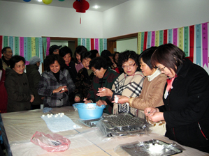 东明路街道金色雅筑居委举办元宵节学包汤圆、猜灯谜活动