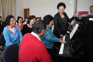 浦兴社区居民生活水平不断提高,求知识,求艺术,求快乐成了居民时尚需求。报名参加浦兴社区学校钢琴班学员每年在增加,从原来只有一个班十几名学员到如今开设了有80多名学员参加的五个班级,成了社区学校一门特色课,深受居民追求与欢迎。 共产党员孙鲁明老师在浦兴社区学校执教钢琴六年,凭着她扎实的钢琴教学基础,自编钢琴教材,使老中青学员易学易懂易掌握,让钢琴这一门高雅艺术走近了社区居民家门,学员成了“社区钢琴艺术家”。 4月28日,孙鲁明老师和学员在庆五·一纪念建党90周年前夕,满怀对党的深情厚谊,教学员弹唱《我爱你,中国》,以一曲吐露心声的钢琴曲献给亲爱的党,表达教师与学员对党的一份真挚情怀。六旬学员王有守激动地说:“弹钢琴是一门高雅艺术,昔日想买一台钢琴学弹,做梦也不敢想;如今,退休了,生活水平提高了,买一台钢琴丰富业余生活,从一个连乐谱不识的人,在孙老师精心执教下,使我懂得了乐谱,学会了弹钢琴,圆了儿时的一个梦想,陶冶了情操,充实了生活,我要把心中最美的歌曲献给党,弹响时代最强音!”