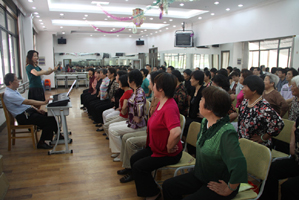 6月13日下午,区社区学院精心组织的声乐课程教学观摩活动在大团镇社区学校举行。执教老师黄秀萍为学员和前来参加听课活动的领导、专家们展示了一堂富有魅力、富有实效的课。她结合建党90周年纪念活动,教唱了由本镇社区居民李德华老师创作的《唱支新歌给党听》。在课上,老师指点有方,师生互动积极,悠扬的歌声反映出老师平时扎实工作的教学成果。黄秀萍老师表示:上课不仅要让老年学员学有所乐,还要让他们学有所得。让他们通过课堂学习,能拿起歌谱自己会唱,掌握科学的发声方法。这对净化人们的心灵,陶冶美好情操是很非常有益的。 新区社区学院张少波院长在作点评时说,大团镇社区学校精心组织的这堂课,上课老师对社区教育具有强烈的责任心,以相当负责任的态度来从事这项工作,整堂课很精彩。希望能有更多的好课呈现在社区居民面前。区社区学院张副书记、蔡副院长以及兄弟学校共30多位老师参加了本次活动。