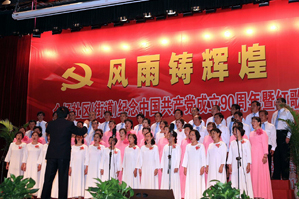 6月29日下午,金杨街道庆祝中国共产党建党90周年大会暨红歌演唱会在港湾学校举行。街道党工委书记赵卫安讲话强调,要继承和发扬党的优良传统,坚持党的全心全意为人民服务的宗旨,坚持走中国特色社会主义道路的信念,坚持科学发展、和谐发展,以改革创新精神不断加强金杨社区党的建设。大会由街道党工委副书记、办事处主任王华主持,党工委副书记朱建华宣读表彰决定,并向获得“先进基层党组织”、“优秀党务工作者”等称号的集体和个人授奖。金杨社区学校获“金杨社区先进基层党组织”称号。 随后,武警九支队、罗山干休所、社区卫生服务中心、社区学校、社区中小学、居委党总支等12支合唱队充满激情地演唱了人们耳熟能详的经典红歌,表达了对中国共产党90年风雨铸辉煌战斗历程的无限崇敬和无比热爱。 (丁丽娟供稿 选编:斯原)
