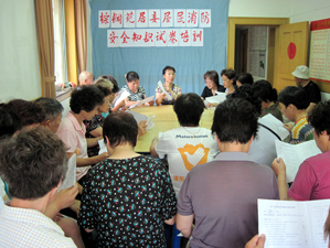 本次培训采用做试卷的形式。此试卷的内容丰富,涉及防火、灭火、自救、疏散等各个方面。在做试卷的过程中,大家相互讨论,查阅资料,经过一个多小时的努力,终于把试卷完成。居民们说,通过做试卷的形式,大家一起合作,更加深了对消防安全知识的认识,提高了防灾减灾的自救互救的能力。