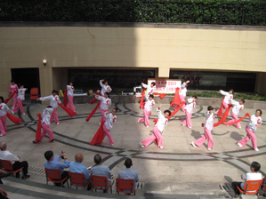 10月26日下午,东明路街道金谊河畔居委在小区下沉式广场举办了“2011年金谊河畔居委文体团队学习成果展演”活动。90多人参加了本次活动。 先上场的是排舞队员们演绎的团体恰恰,随着节奏鲜明、欢快的舞曲队员们灵活摇摆,活力四射,仿佛一时间焕发了青春,让路人都驻足观看。木兰拳操队员们不但为大家献上今年以来学会的一套完整的红绸扇舞,还有合唱队员们演唱的《祖国最美丽》,将高低音、男女声部的纯熟展示,其中离不开教唱老师凝聚的心血和所有合唱学员们的一致努力。 本次分校学员们的精彩展演充分展示了分校2011年的学习硕果以及小区中老年居民朋友们的风采。