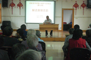 5月8日上午,唐镇民丰前进村开展彩虹读书读报小组学习活动第七讲。此次活动由退休老师孙森奎为学员们解读《唐镇史韵》一书,他从书中了解的唐墓桥镇的成因、露德圣母堂、唐墓桥镇商业之兴起等几篇文章反映唐镇前年历史风貌的故事一一解读分析给学员们听,让他们更进一步认识唐镇、了解唐镇、热爱唐镇。