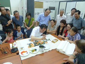 7月19日下午,应浦兴社区文化活动中心的邀请,吴昌硕纪念馆执行馆长吴越,在中心视听室成功举办了“吴昌硕与海派书画的影响与发展”讲座,本社区书画爱好者纷纷到场聆听。今年,正值吴昌硕先生“移家沪上”引领海派艺术一百周年。吴越老师从吴昌硕先生的生平开始讲述,将承启中国近代诗、书、画、印艺术的一代宗师、艺坛尊其为“四绝”画家、海上画派领袖人物的艺术探索之路及所处的时代背景,海上画派的源流和艺术精神娓娓道来,并与在场的听众共同欣赏与解析了昌硕先生的画作。最后,吴越老师在书画室当场挥毫泼墨,用纯朴的水墨和奔放的重彩创作了一幅《凌霄花》,赢得书画爱好者们声声赞叹。